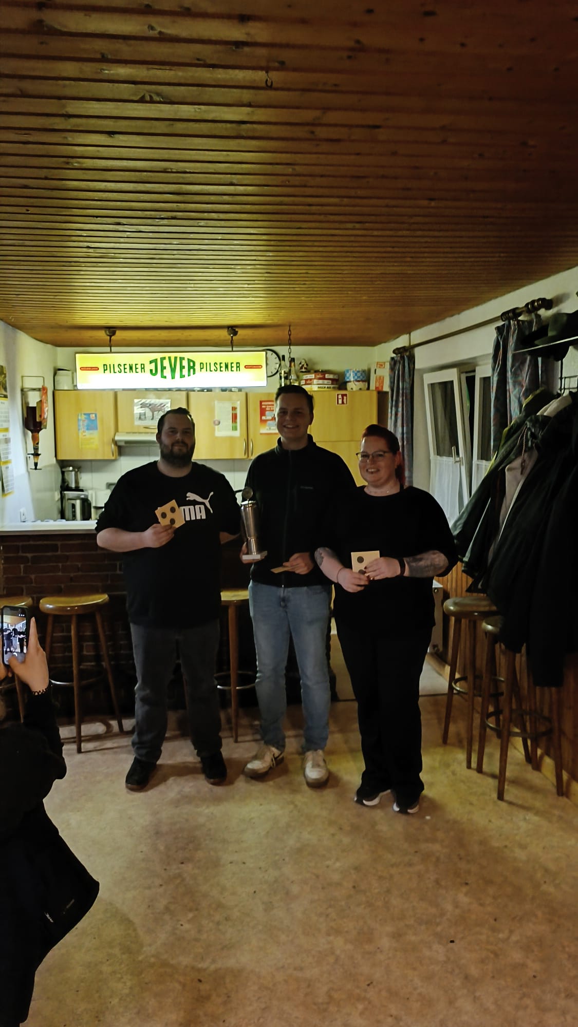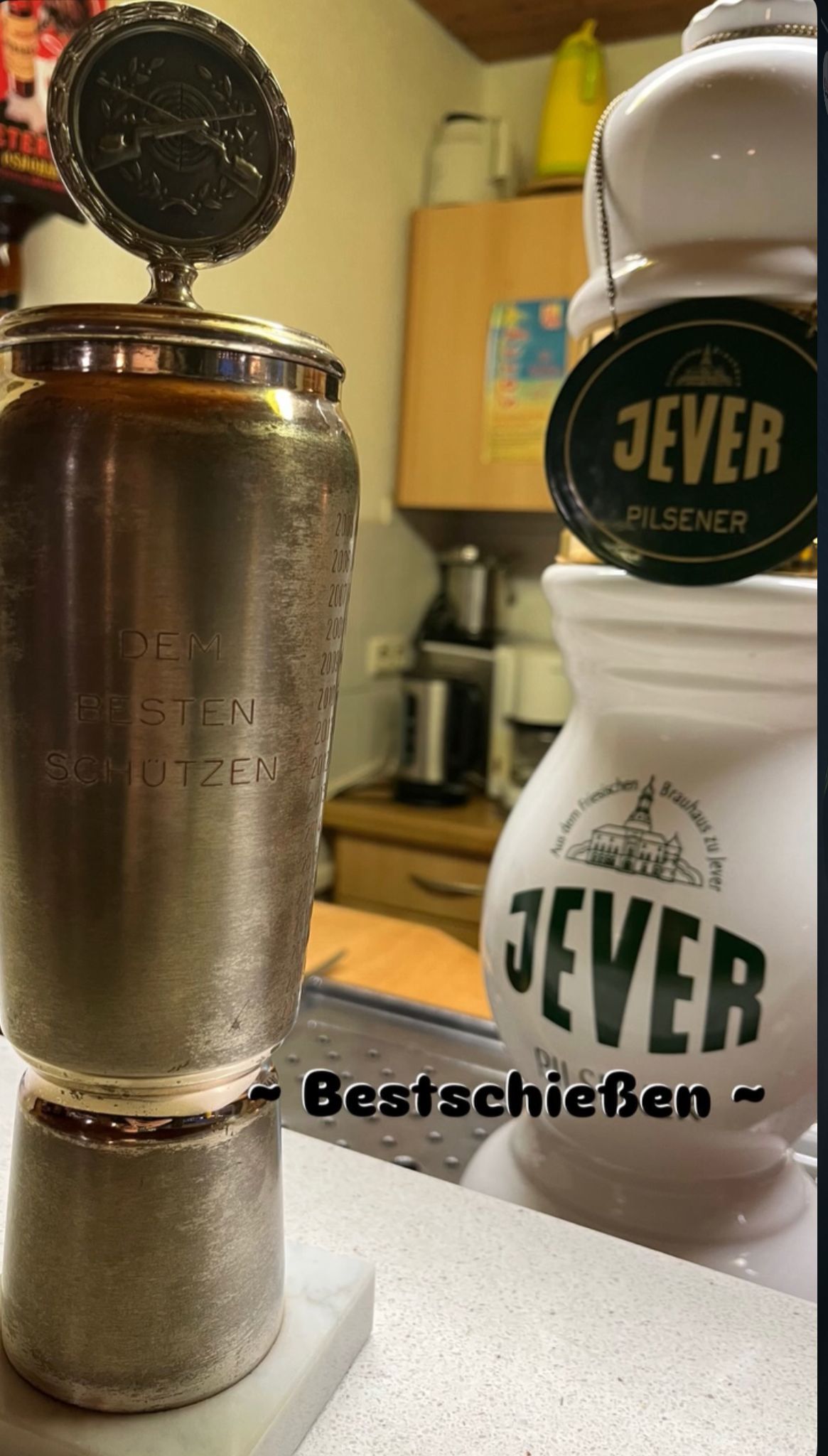 An dieser Stelle nicht unerwähnt lassen möchte ich die Wahl unter dem Punkt Verschiedenes. Unser Zippi oder auch bekannt als Johann Hinrichs, hat seinen Posten als Getränkewart zur Verfügung gestellt. Zusammen mit Alec Erks wird künftig Jannik Hayen für die Getränkeversorgung im Schießstand sorgen.